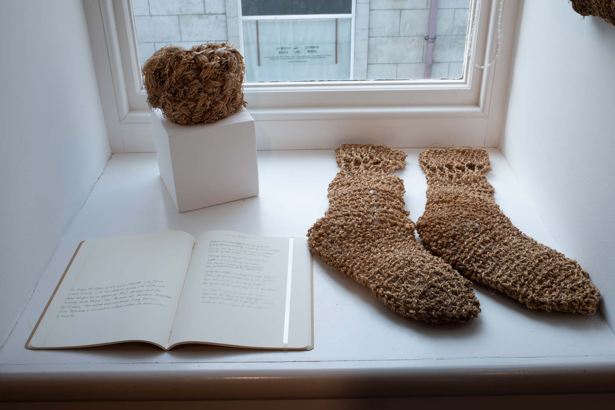 With grass artefacts from Orkney Museums and Magnus Spence herbarium sheets from Stromness Museum collection. Film of tradition bearer Neil Leask weaving a Craa’s foot by Mark Jenkins.